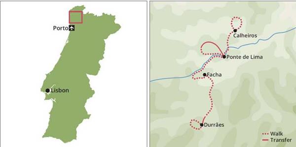 This was a gentle self guided walking holiday called "The Manor Houses of Minho" and was organised by Inntravel, The original booking was postponed as my artificial right knee had come loose and had to be replaced. We were restricted on how long we could defer without penalty. My operation was on the 1st August and we set off on our walking holiday on the 23rd October. It would not be true to say I was totally confident of being able to do it, but hey ho what the hell.